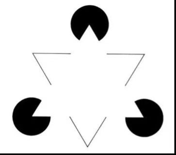 功能主義心理學上,有一分支叫「格式塔」,研究人類的傾向性。「格式塔」的意思本來是說「一種格式、一個完整的形狀」,其實就是人類善於腦補。比如下圖就會看到不存在的倒三角上有正三角。