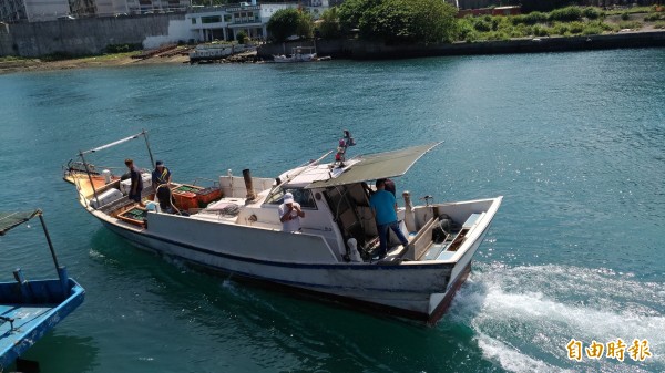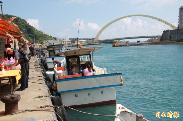 該男子隻身跳上船,隨著漁船出港放生。(記者吳政峰攝)