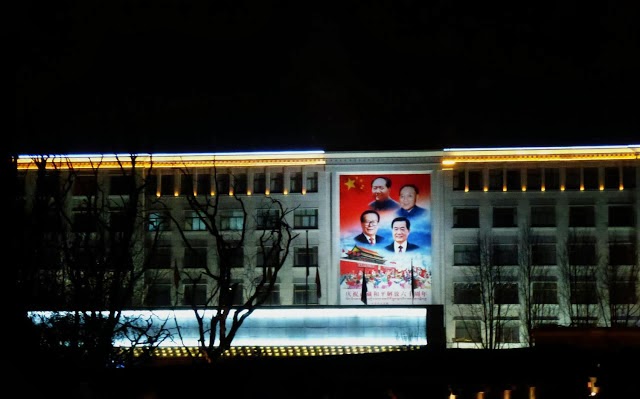 而拉萨城里的政府办公楼上更是高挂着巨幅“领袖像”,在夜色中被强烈的灯光照亮,似乎在宣示党的超人们连黑夜也有权去制服。